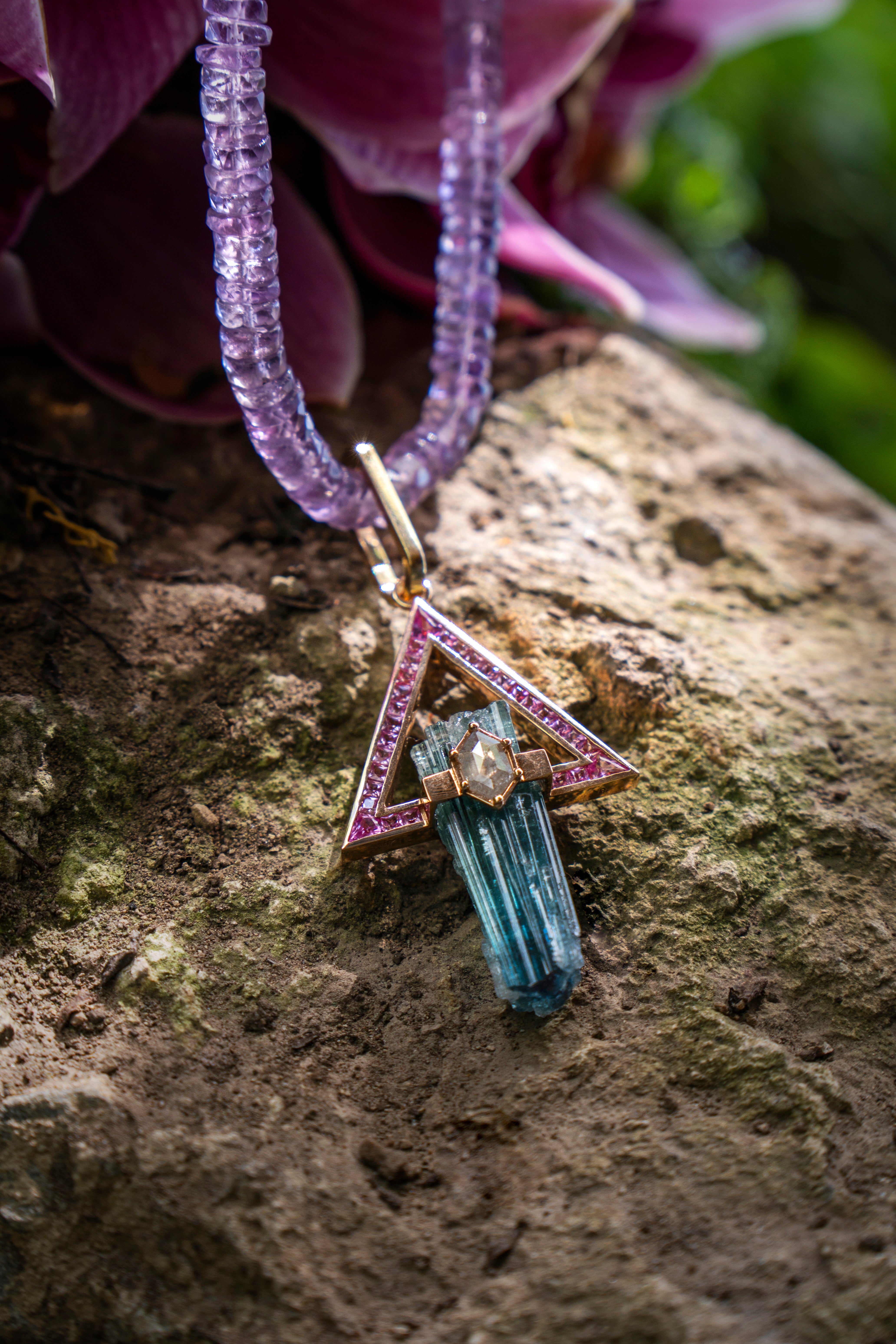 It definitely would be like a gateway like a portal to the inner self. A key. The energy of this is light, of the illumination of where things are going rather than the heaviness of where things have been. The energy of the blue tourmaline is very tranquil, very peaceful…deep calming.